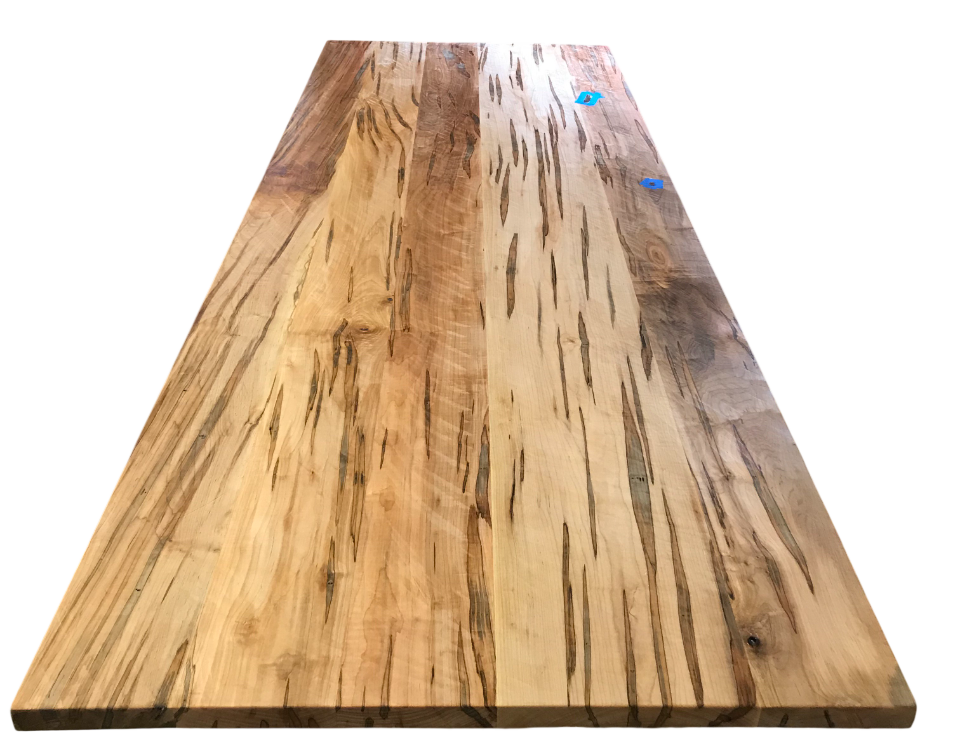 The base of this table is cherry, which darkens overtime to a deep caramel color. The tabletop, shown in progress,(right) is made from 1.25″ ambrosia maple. This will yellow over time and provides a rustic appearance.